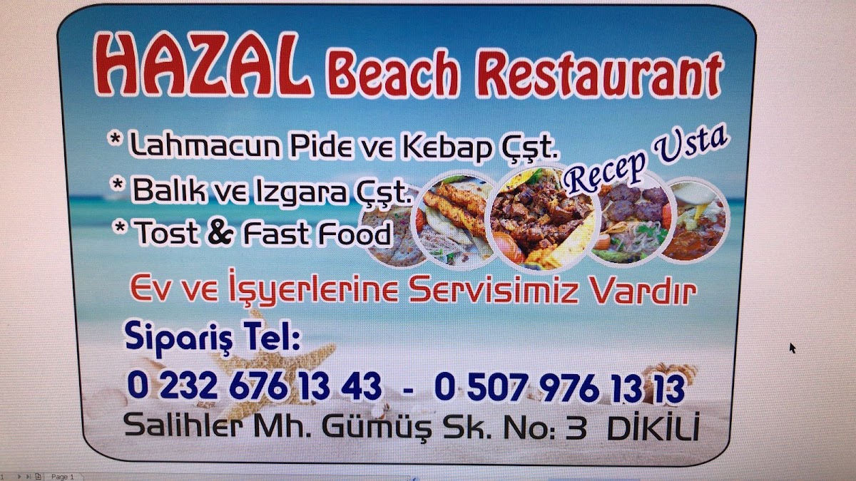 Hazal beach restaurant Menu
